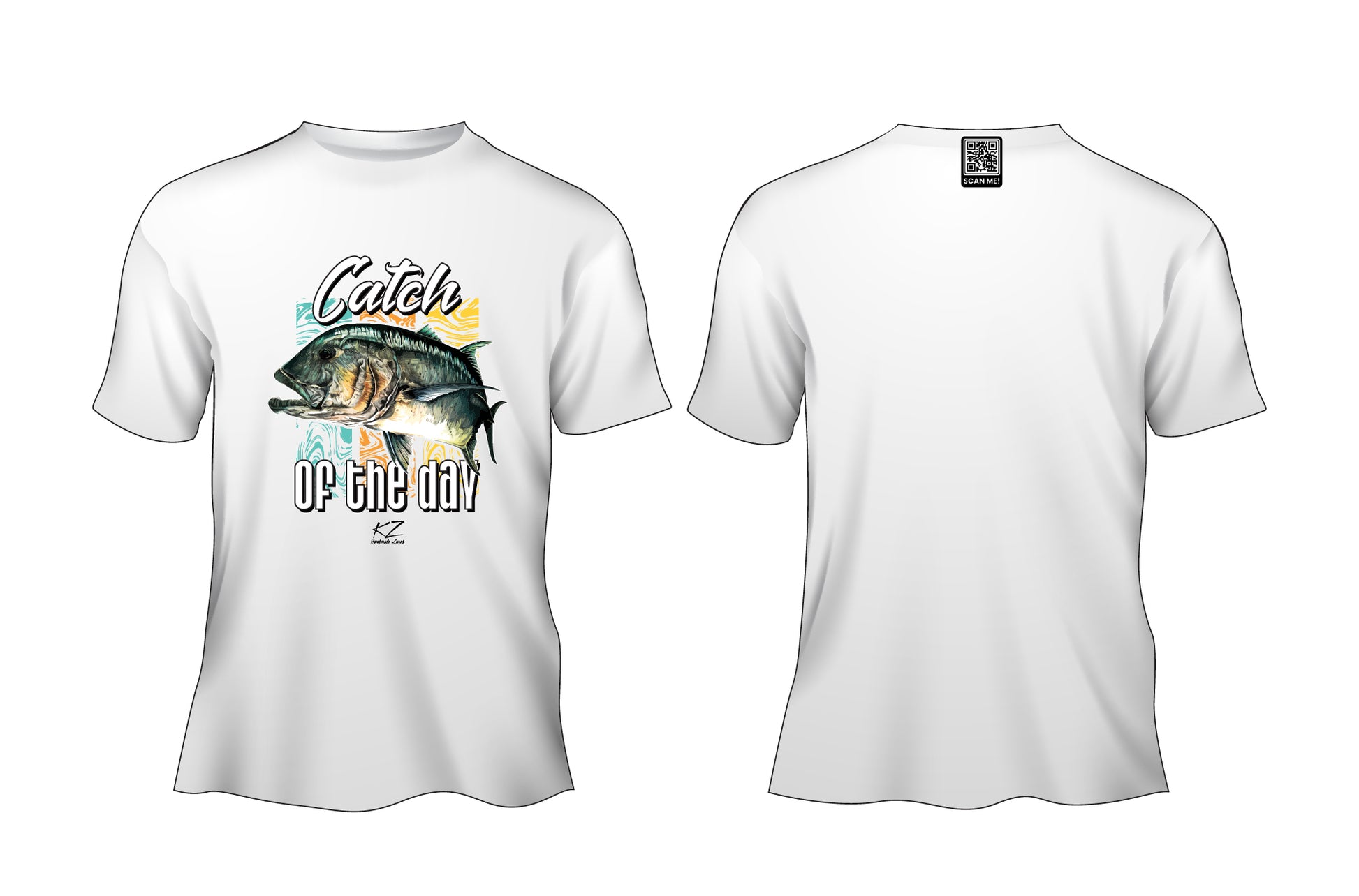 Each T-shirt features exclusive fish-themed artwork hand-painted by South African artist Paul Kyriakides, giving every piece a unique, artistic character inspired by the ocean and marine life.